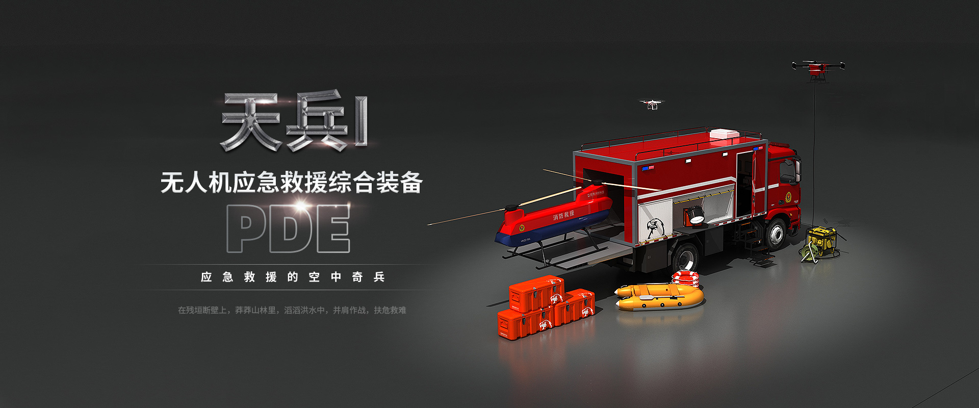 天兵Ⅰ是2017年企業(yè)承擔(dān)的原公安部消防局《旋翼無人機(jī)在滅火搶險救援領(lǐng)域中的應(yīng)用》科技創(chuàng)新項目的研發(fā)成果。配置了大、中、小型無人機(jī),集成多種應(yīng)急救援模塊和承載運輸車輛,具備野外多場景下應(yīng)急救援功能。通過搭載各類應(yīng)急救援模塊,可執(zhí)行災(zāi)害事故現(xiàn)場多架次的物資運輸投放、現(xiàn)場偵察、高空照明、通訊中繼任務(wù),以及水域、山岳救援任務(wù),適用于地震救援隊、特勤消防站在地質(zhì)災(zāi)害救援中解決“最后一公里”運輸困難,以及在復(fù)雜場景下空中救援問題,使消防救援隊伍具備空中物資運輸保障跨障礙救援能力。